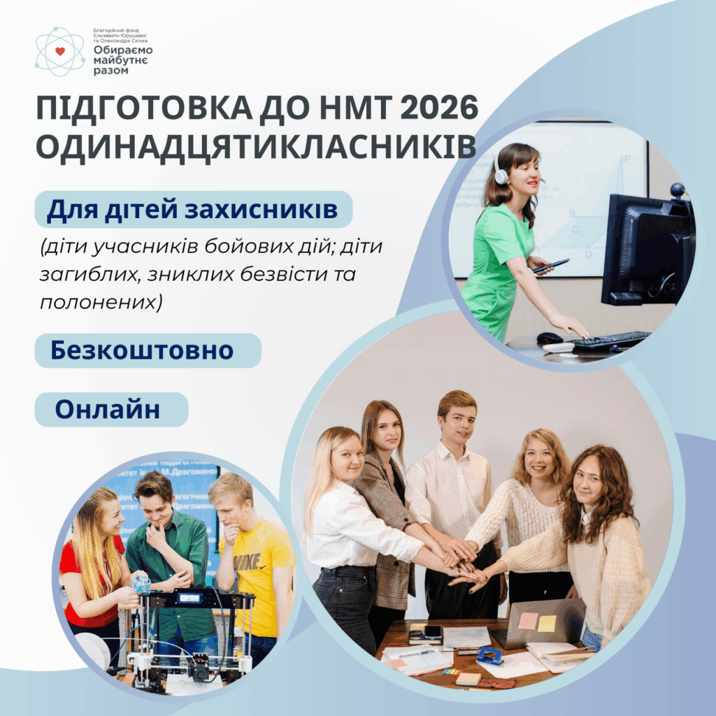 Благодійний фонд «Обираємо майбутнє разом» відкриває реєстрацію учасників до проєкту «Підготовка до НМТ одинадцятикласників” для дітей захисників.